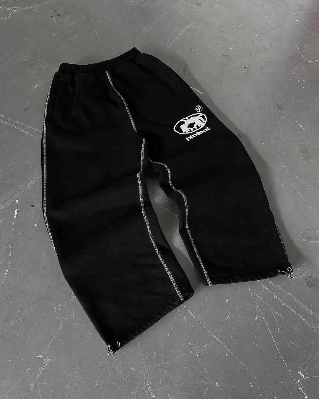 Material: Polyester-blend streetwear fabric (typical for retro joggers)