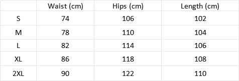 Size Chart(CM):-